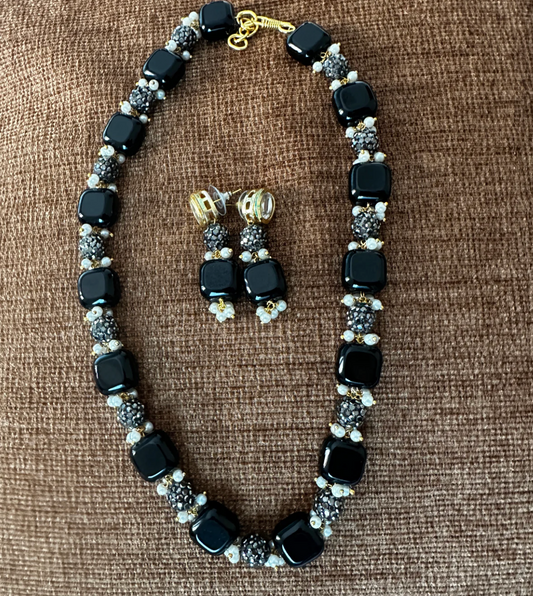 Black Beaded Necklace set with earrings