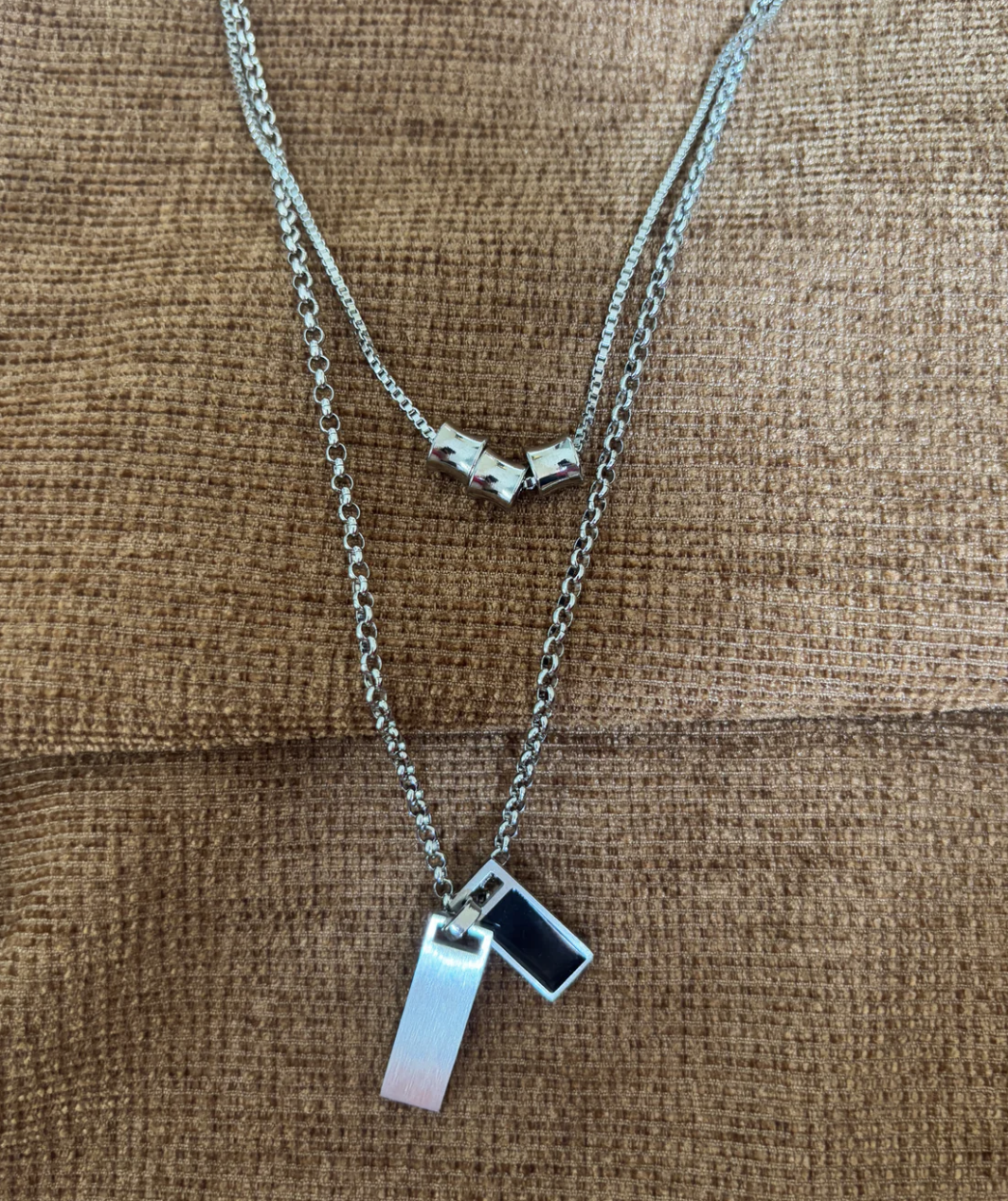 Experience the art of understated luxury with our Double Layered Steel Bar Chain. Crafted with precision and elegance, this chain boasts a unique double layer design for a chic and sophisticated look. Elevate your accessory game and make a statement with this piece.