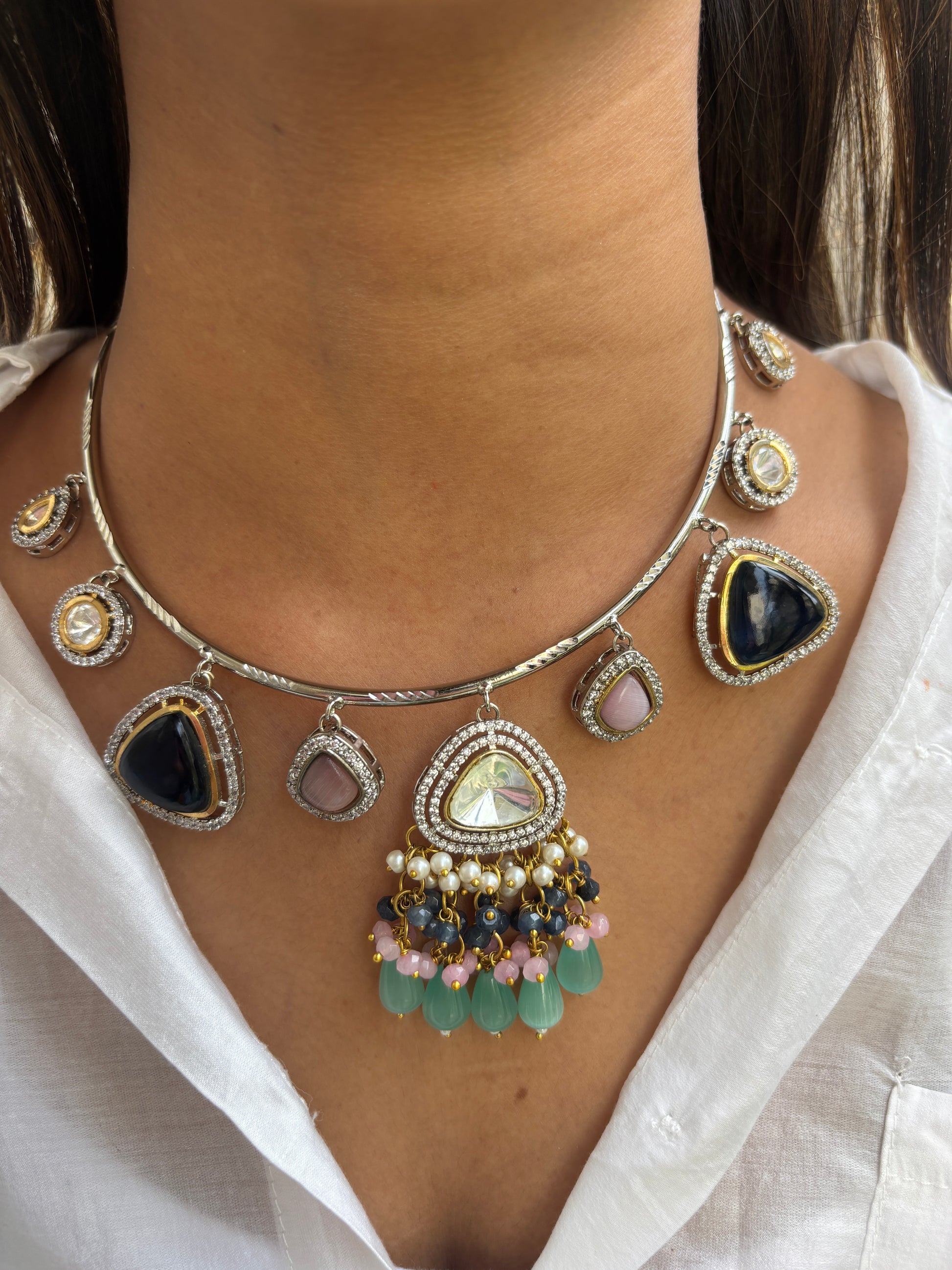 Silver Hasli with Polki